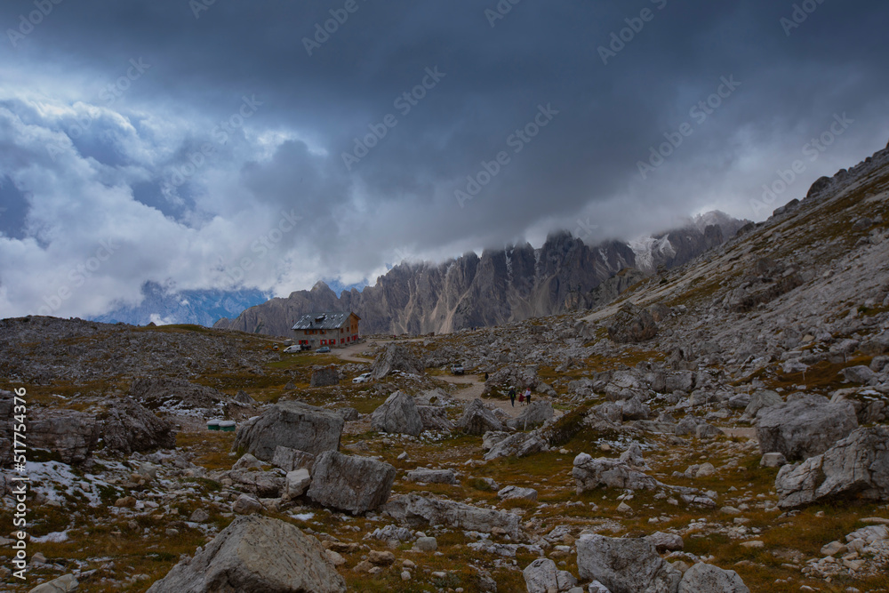 The famous "Tre cime di Lavaredo", situated between Veneto and South Tyrol, in northern Italy. Dolomites, South Tyrol, Italy.