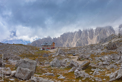 The famous "Tre cime di Lavaredo", situated between Veneto and South Tyrol, in northern Italy. Dolomites, South Tyrol, Italy.