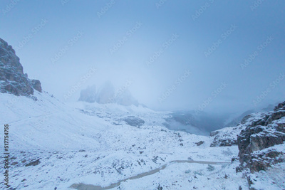 The famous "Tre cime di Lavaredo", situated between Veneto and South Tyrol, in northern Italy. Dolomites, South Tyrol, Italy.