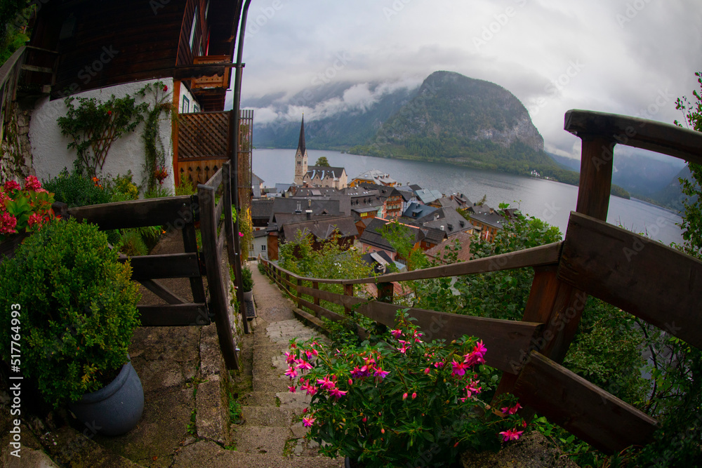 View of the Hallstatt from lake Hallstater See, Austria