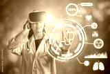 Telemedicine concept with doctor wearing VR glasses, staff or physician professional doctor use virtual reality headset to check and threat patient that stay