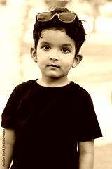 cute kid boy posing with sun glass on outdoor