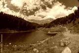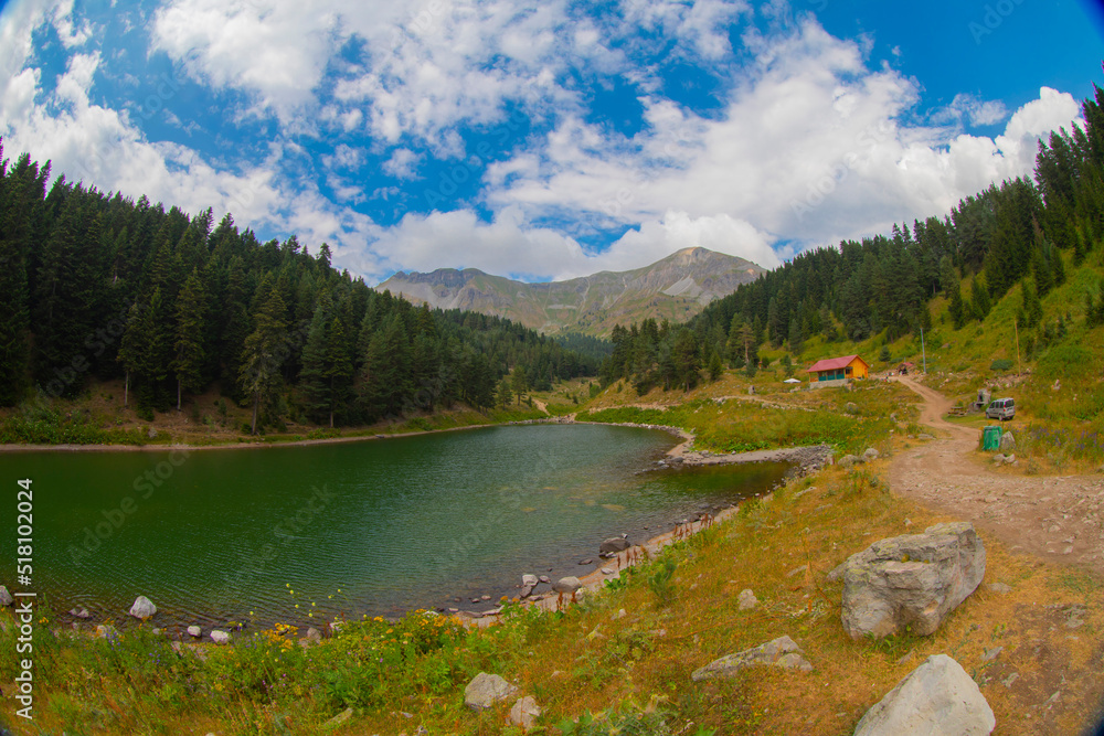 Fish Lake ( Balikgol ) Spring mountain in background in Savsat
