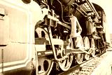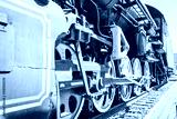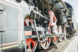 Old historic steam locomotive wheels part shot close up.Selective focus.