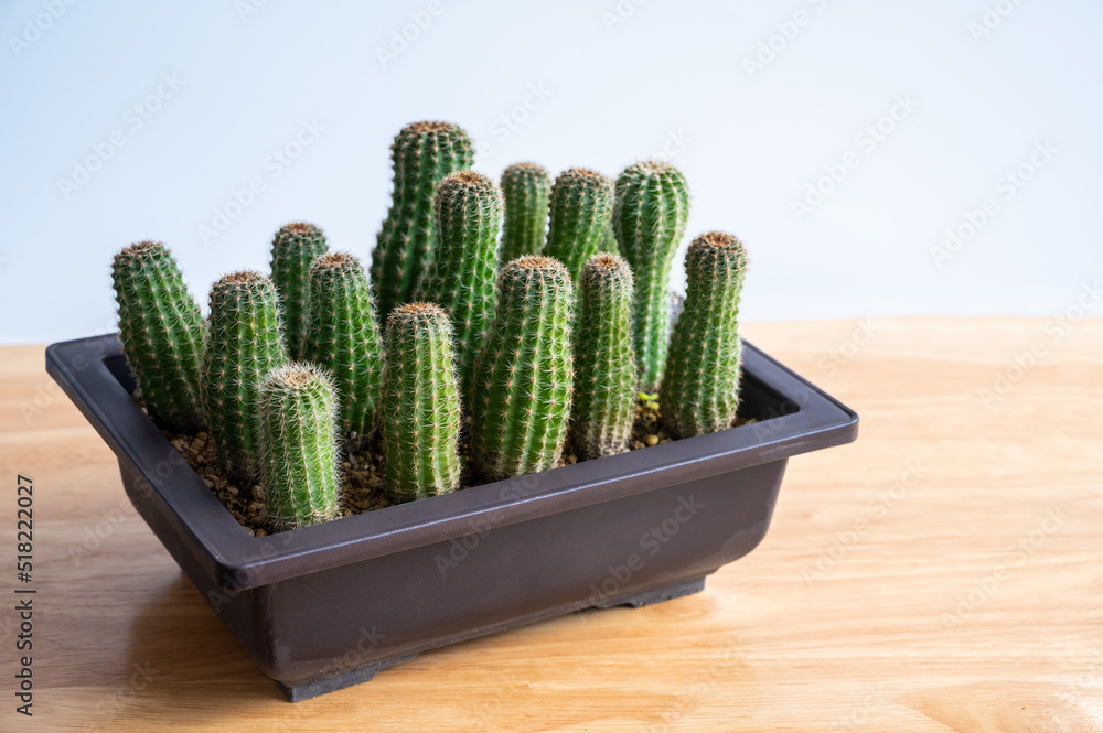 Group of strange Echinopsis calochlora cactus stretching caused of lack of sunlight. Cactus need exposure to lots of sunlight to thrive and blossom.
