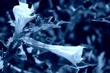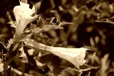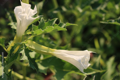 Jimson weed in bloom with white flowers. Datura stramonium also known as Devil's snare, Thorn Apple, Devil's Trumpet, Angel Tulip, Hell's Bells on summer