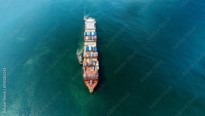 cargo ship and truck at seaport waiting for container dock crane shipment harbor loading container import and export commercial trade business logistic and transportation international.