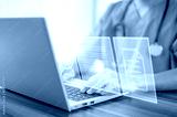 Doctor use computer connection server data base patient for technology treatment in hospital
