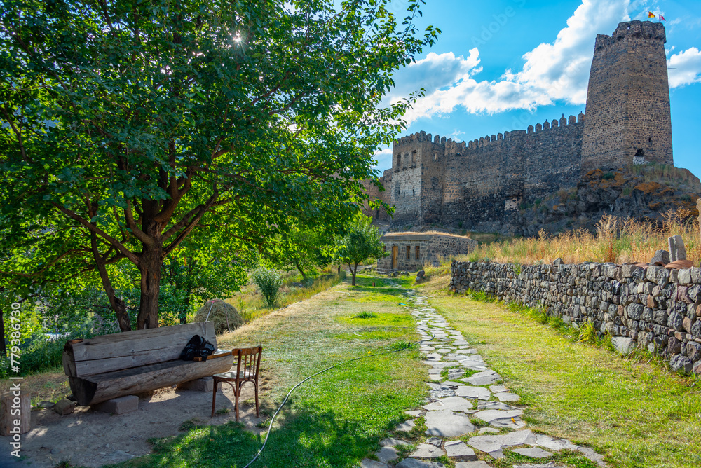 Little boy flying his paper airplane into the sunset sky. Childhood adventure, and imagination concept.
