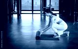 Young sporty attractive woman wearing sportswear practicing yoga working out on mat at gym background .Yoga is health care lifestyle.