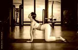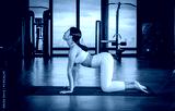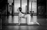 Young sporty attractive woman wearing sportswear practicing yoga working out on mat at gym background .Yoga is health care lifestyle.
