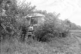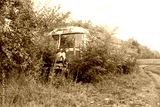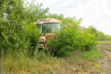 Abandoned Bus In The Woods Hidden By Trees And Overgrowth