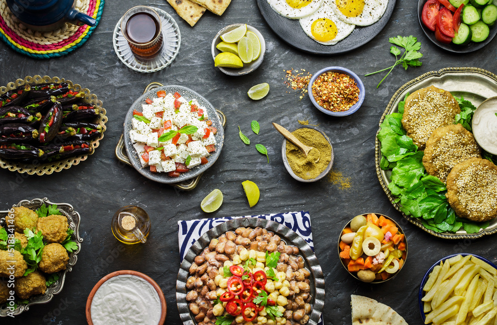 Arabic Cuisine: Middle Eastern traditional breakfast. It's also Ramadan "Suhur" or "Sahur". It's an Islamic term referring to the meal consumed early in the morning by Muslims before fasting.
