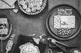 Varieties of traditional candies and sweets to celebrate "Prophet Muhammad's Birthday event". Top view with copy space.