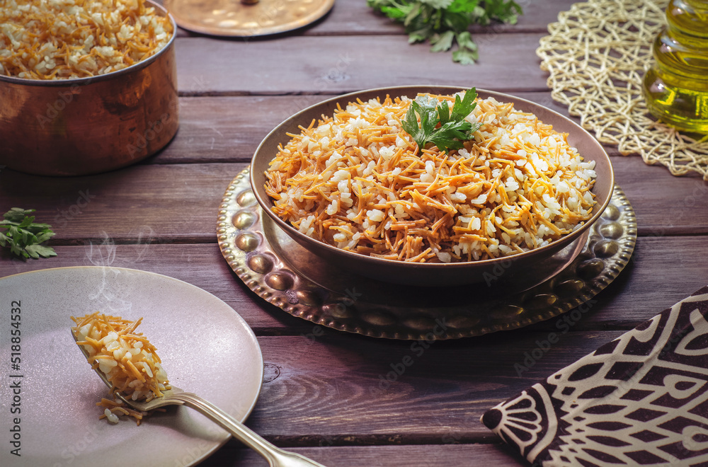 Arabic cuisine; Egyptian oriental dish "Rice with vermicelli".