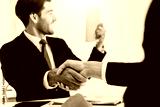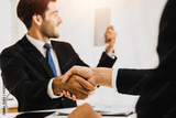 close up hand of company employee receive bonus from manager, getting salary in envelope from boss at working place