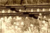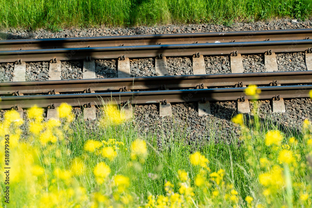 Railway and sleepers close-up. A major railway interchange near the station for train traffic, logistics between cities, cargo transportation.