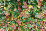 European beech tree with beautiful yellow leaves on sunlight on autumn season. Fagus sylvatica