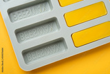 Natural beeswax. Molded bars of beeswax in a silicone mold on a yellow background. Beekeeping products. Copy space.