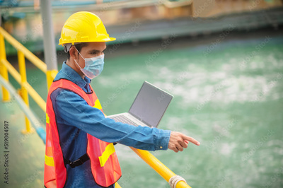 Asian man technician worker inspecting key condition control in water treatment factory