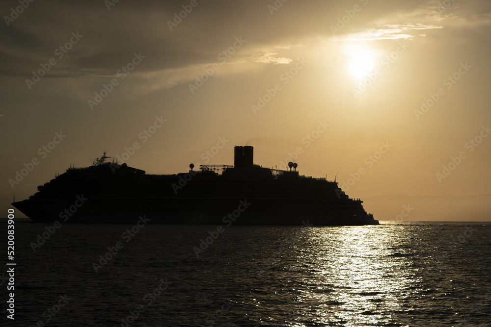 big ship silhouette at sunset