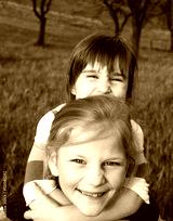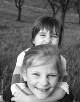 Two little girls playing in the grass