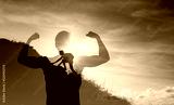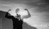 Strong man finding his inner strength. Man climbing up a steep mountain path. Vision and goal setting.