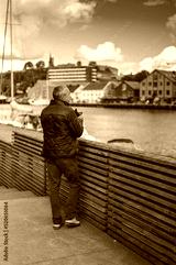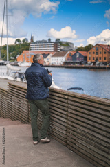 attractive old man walking in the city lifestyle portrait with Tonsberg viewpoint