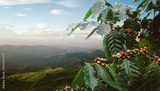 Coffee tree with fresh arabica coffee bean in coffee plantation on the mountain at northern of Chiang Rai, Thailand.