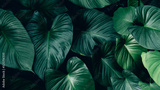 Large foliage of tropical leaves with dark green texture, nature background.