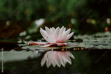 Reflection of a soft pink water lily in the lake