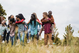 Young diverse friends, having fun outdoor laughing together - Focus on african man face