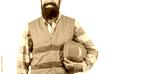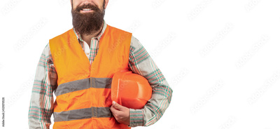 Portrait of a builder smiling. Worker in construction uniform. Man builders, industry