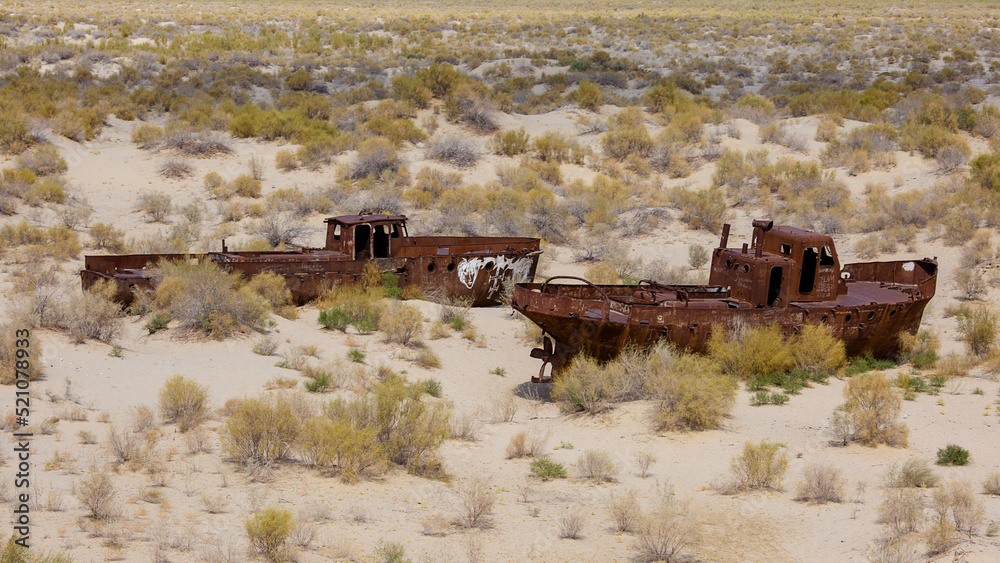 Cemetery of forgotten ships in Muynak. Aral Sea . Uzbekistan