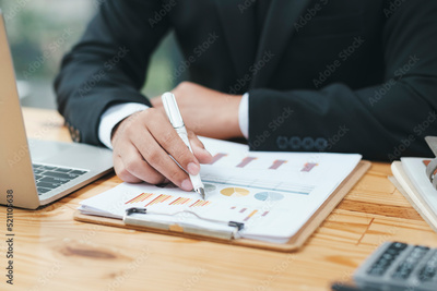 Close up of businessman analyse investment marketing data.
