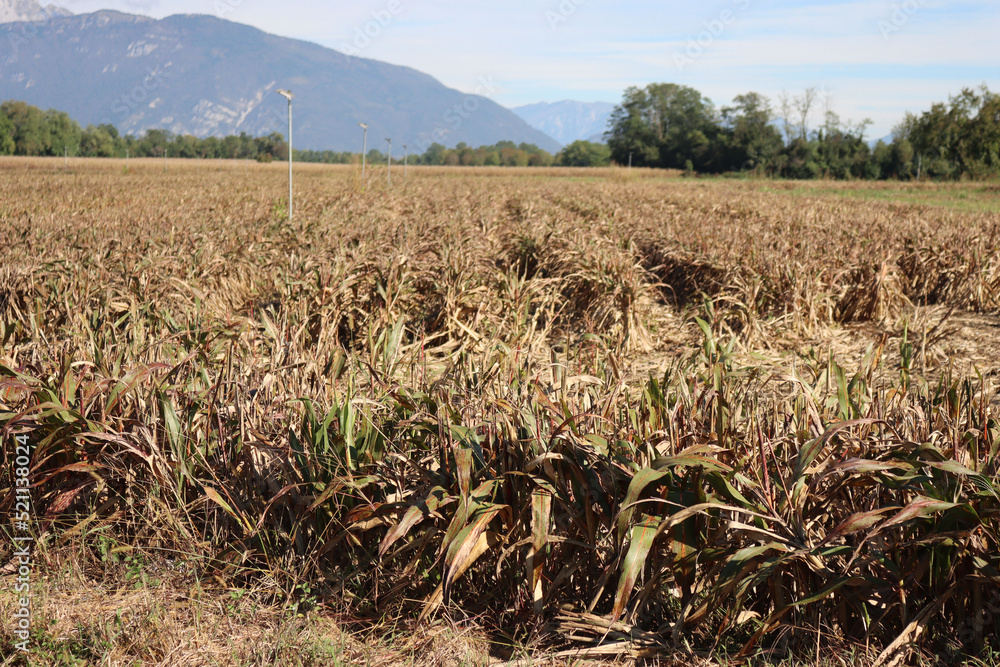 Harvested Sorghum or millet plants in the field. Sorghum agricultural cultivation in northern Italy