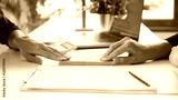 A female real estate agent or realtor receive a down payment or security deposit from her client