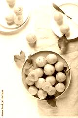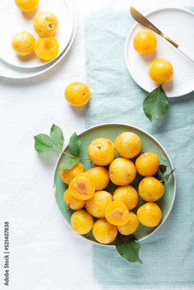 Fresh sweet yellow plums on the table