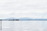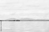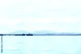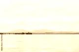 Old derelict wooden jetty pier in sea at Inverkip power station