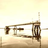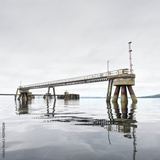 Old derelict wooden jetty pier in sea at Inverkip power station