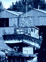 Boat at shipyard for repair at Clynder in Argyll and Bute