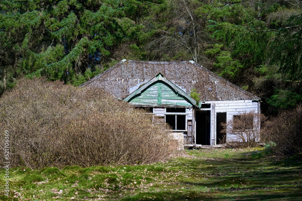 Derelict building on Inchconnachan island at Loch Lomond