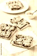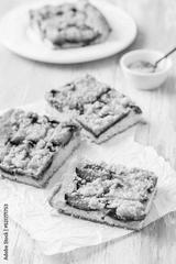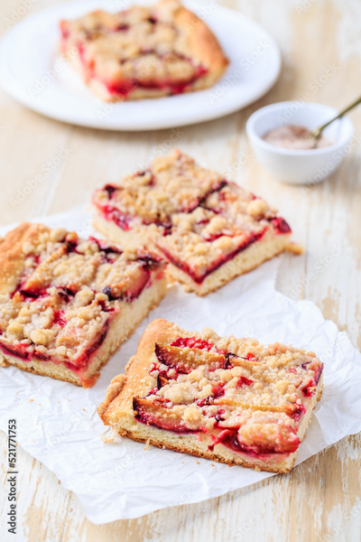 Homemade plum cake with yeast dough and crumbles