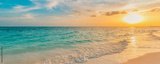 Sea ocean beach sunset sunrise landscape outdoor. Water wave with white foam. Beautiful sunset colorful sky with clouds. Natural island panoramic background. Idyllic amazing tropical island shore