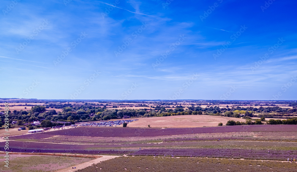 Hitchin lavender field in Ickleford near London, flower-farming vista popular for photos in summer in England
