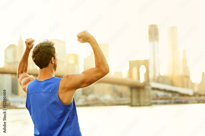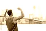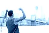 Winning cheering success fitness man in New York