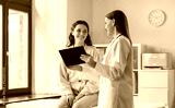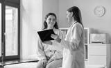 medicine, healthcare and people concept - female doctor with tablet pc computer talking to smiling woman patient at hospital