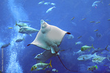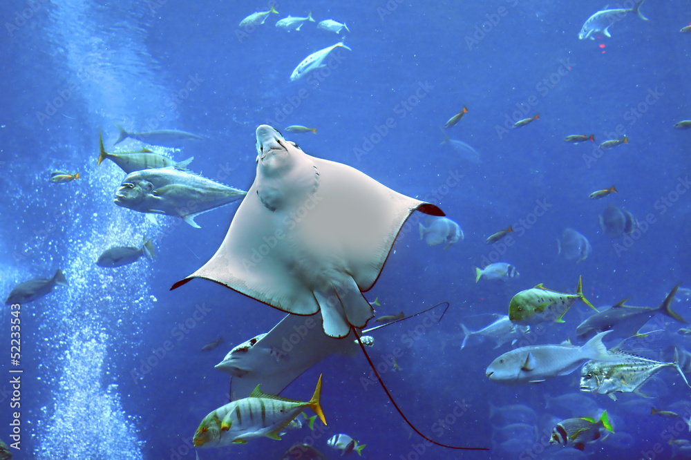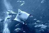 Electric slope in blue water. Aquarium in Dubai