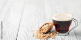 Cup with coffee barley with barley grains. Healthy herbal drink for immunity. Coffee alternatives