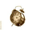 clock on wooden table at room and backyard